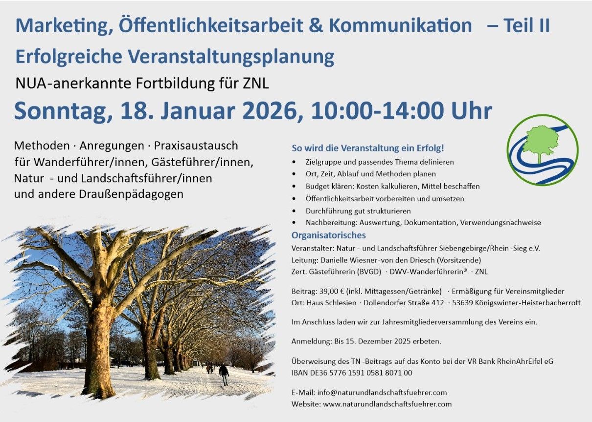 Fortbildung für Natur- u. Landschaftsführer/innen, Wanderführer/innen, Erzieher-/Lehrerinnen, Draußenpädagogen & Interessierte.